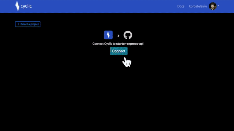 Deploy a full stack serverless app on cyclic in seconds. Bring your own repo or fork and install a starter from our library: